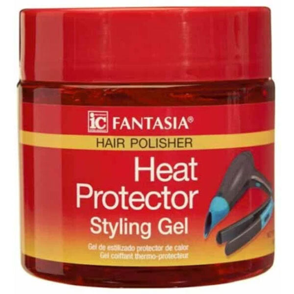Product Information fantasia ic hair polisher heat protector styling gel protects hair from damage caused by heat lightweight gel with protective barrier smoothes flyaway and adds definition to waves and curls