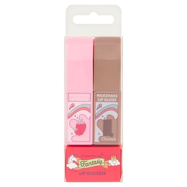 This Fantasy Milkshake Lip Gloss Duo set offers two distinct cosmetic options for your collection. You receive both the chocolate-inspired and the strawberry-inspired lip gloss formulations in one convenient pairing. Both glosses share a base formulation featuring Paraffinum Liquidum, Ethylhexyl Palmitate, and Polyisobutene.