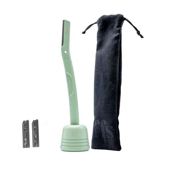 the reusable zero waste metal dermaplaner designed to give professional quality results at home the single blade razor effectively removes peach fuzz and other unwanted facial hair 100 plastic free set comes with dermaplaner tool matching stand silicon cover travel pouch and 3 blades