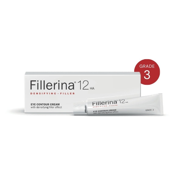 fillerina 12ha densifyingfiller eye contour cream fillerina 12ha densifyingfiller eye contour cream is a daily dermocosmetic treatment specifically formulated to target signs of aging around the delicate eye area this advanced cream offers a noninvasive alternative to injectable fillers aiming to reduce wrinkles fine lines and sagging while enhancing skin density and elasticity key features 12 hyaluronic acid molecules the cream is enriched with 12 different hyaluronic acid molecules of varying molecular weights allowing for deep penetration into the skin layers this composition effectively addresses skin depressions and provides a plumping effect to areas prone to volume loss densifying complex incorporates 3 collagen and 2 elastin molecules each with different molecular weights to promote increased extracellular matrix density this enhances skin firmness and elasticity combating signs of aging and sagging nourishing ingredients formulated with rice oil shea butter and sweet almond oil known for their emollient moisturizing and soothing properties contributing to skin youthfulness and comfort available grades grade 3 targets initial expression lines and wrinkles providing additional volume to the eye contour area grade 4 addresses deeper expression lines and wrinkles visible sagging and more pronounced volume loss grade 5 designed for very deep expression lines and wrinkles significant sagging and substantial volume loss benefits filler effect the combination of 12 hyaluronic acids works to fill in expression lines and wrinkles providing a plumping effect to areas prone to volume loss densifying effect the inclusion of collagen and elastin molecules supports the skins firmness and elasticity combating signs of aging and sagging nourishing and soothing the added natural oils offer moisturizing and soothing effects ensuring a revitalized and youthful appearance experience the transformative effects of fillerina 12ha densifyingfiller eye contour cream and achieve a more youthful plump and firm eye area without the need for invasive procedures