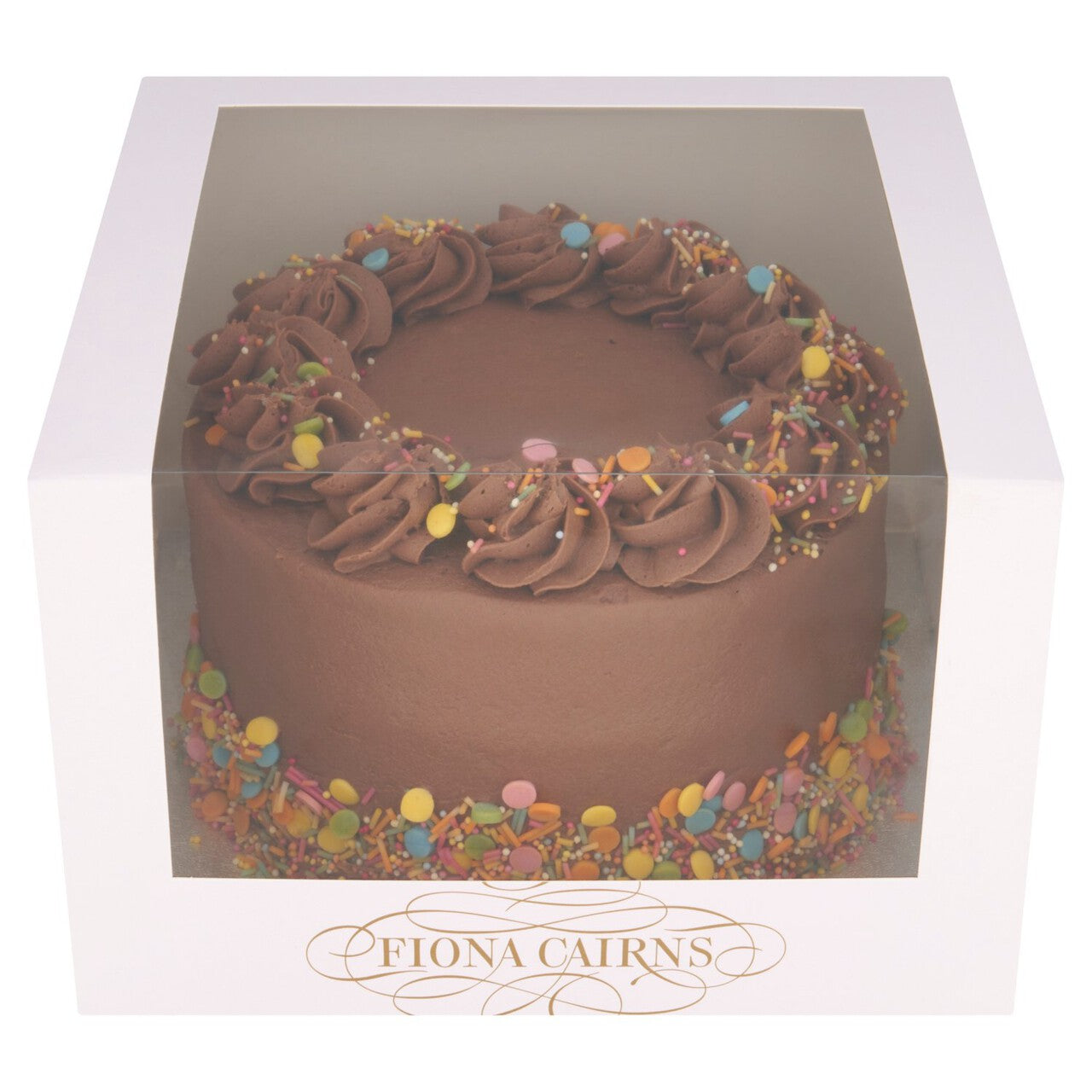 This Fiona Cairns Chocolate Cake is expertly handmade and is suitable for vegetarians, making it a convenient and thoughtful addition to any gathering. It features rich chocolate sponge layers topped with smooth milk chocolate buttercream frosting for a satisfyingly indulgent taste experience. The entire dessert is generously decorated with vibrant, multi-coloured sprinkles, ensuring a cheerful and festive presentation.