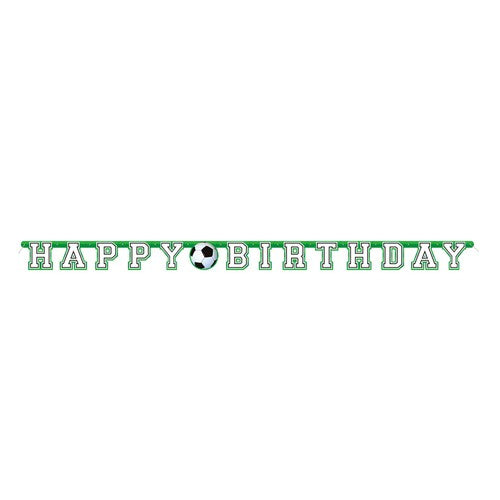 This jointed banner adds immediate sporty decoration to any birthday celebration themed around football. Measuring a full 7 feet in length, this decoration is designed to make a visible impact on your party space. The banner clearly spells out "Happy Birthday" in a football aesthetic, setting the scene for the event.