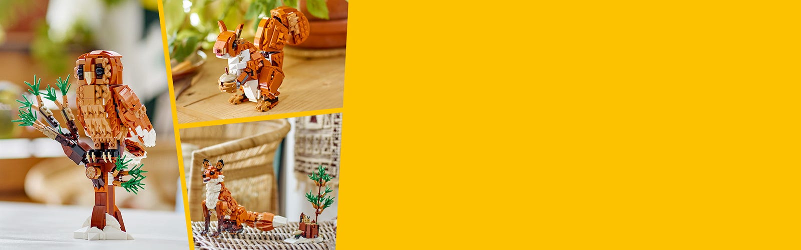 This Creator 3in1 set lets kids build 3 different woodland LEGO animals with the same bricks. They can build a highly posable red fox figure, rebuild it into a posable red owl toy perched on a tree branch, or a posable red squirrel toy with an acorn. All 3 playsets make for great display items on a shelf or bedside table.