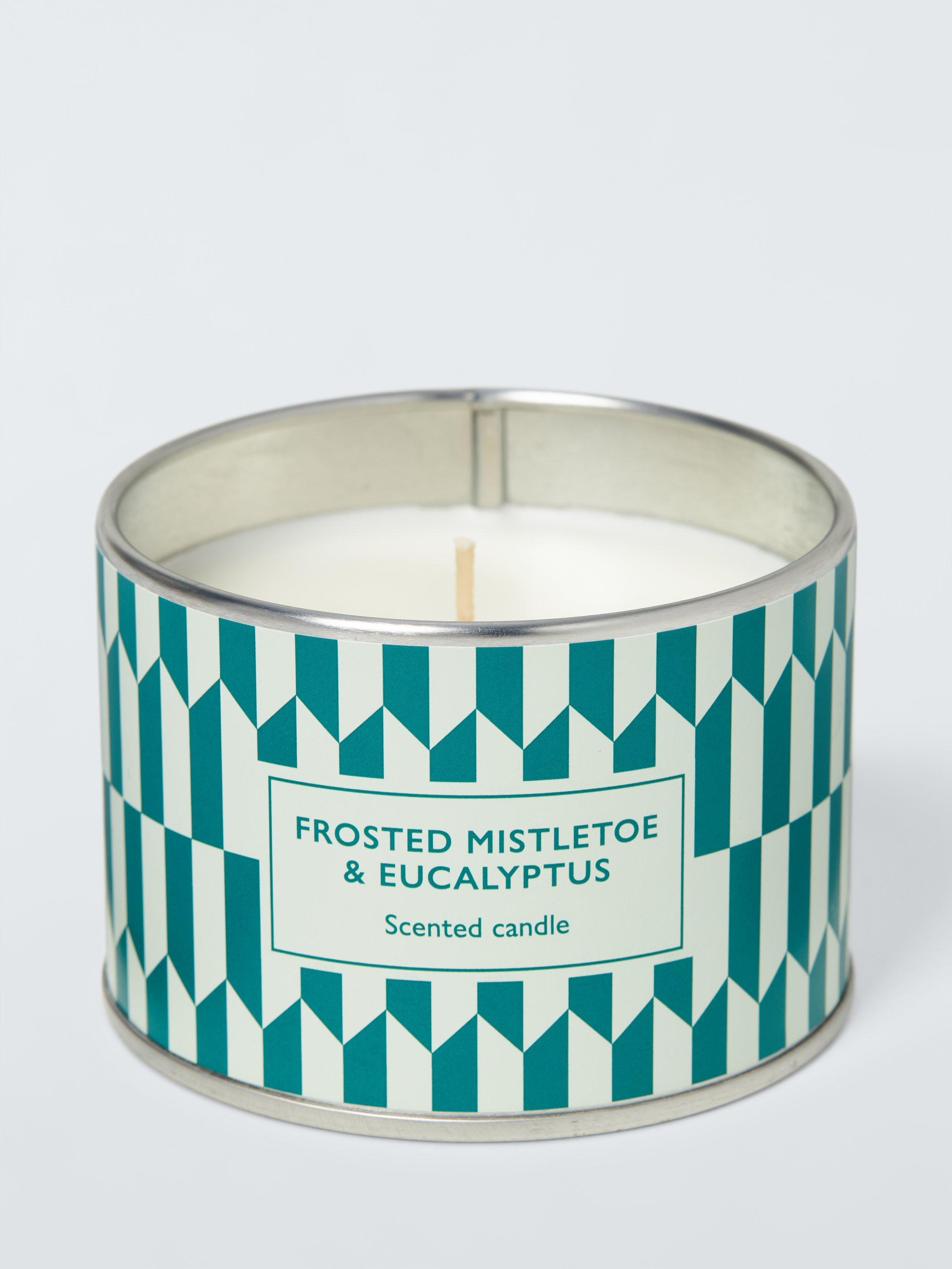 John Lewis presents the 147g Frosted Mistletoe scented tin candle, perfect for creating immediate winter ambiance indoors. This formulation incorporates the romantic freshness of eucalyptus, mingling beautifully with traditional seasonal notes to elevate any room setting immediately. Expect a wonderful, clean fragrance throw from this premium home accessory available today.