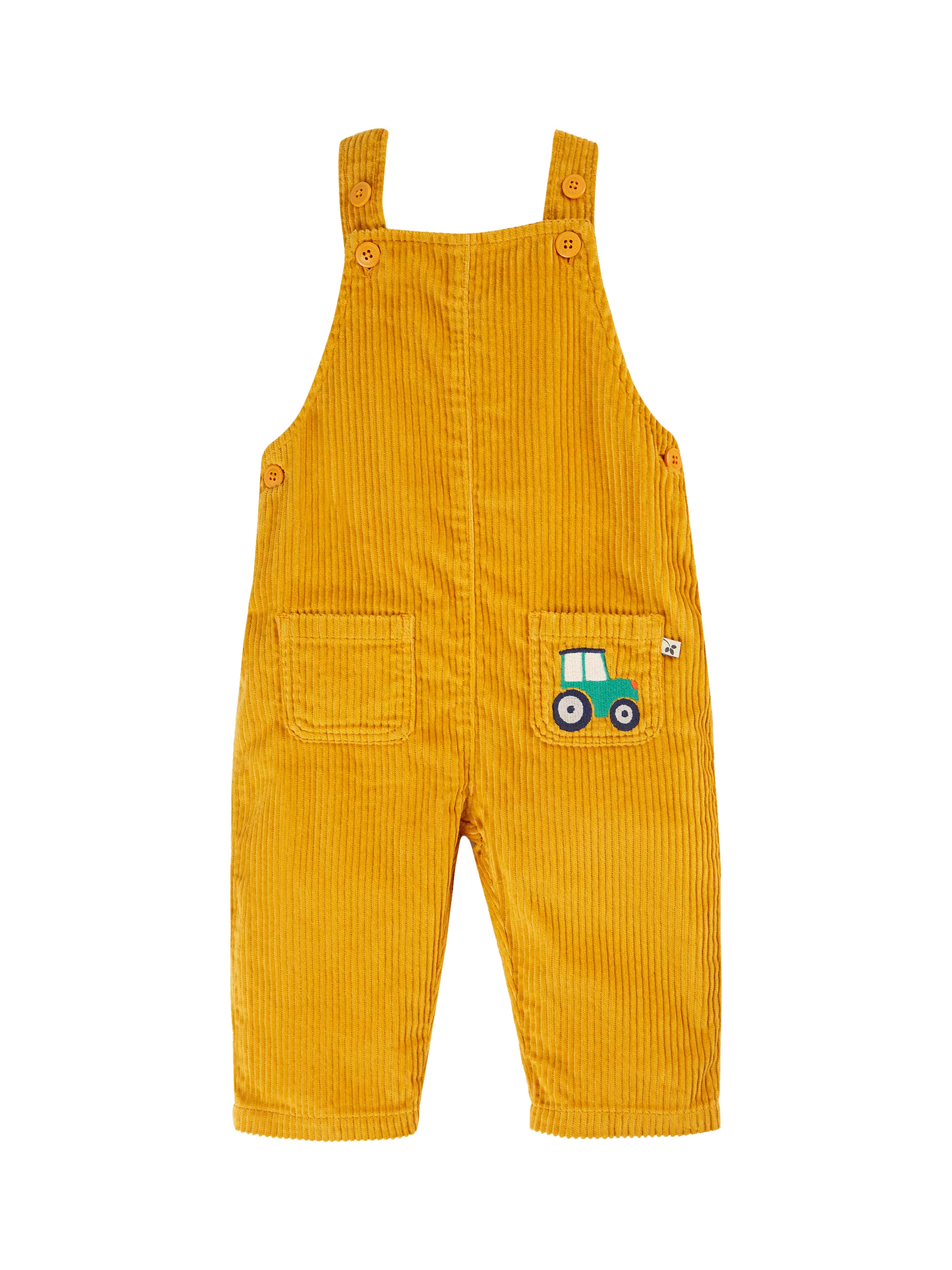 Made from fine cotton corduroy, these cute dungarees have adjustable shoulder straps, buttons on the side seams for easy dressing and an embroidered patch on the pocket.