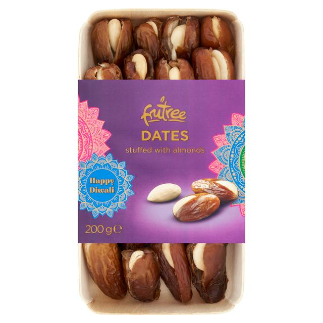 Product details Description Dried pitted dates filled with blanched almond kernels Nutrition Table of Nutritional Information per 100 g per 100 g Energy 1421 kJ 336 kcal Fat 7.4 g - of which saturates 0.7 g - Carbohydrates 59 g - of which sugars 55 g - Protein 5 g... Read More