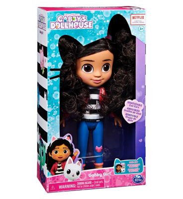 Read MoreHang out with Gabby from Gabby’s Dollhouse with the all-new Gabby Girl doll. Featuring realistic details from head to toe, this 20.3-cm doll brings Gabby to life. Gabby Girl wears her classic outfit from the show, including trainers, jeans with a kitty patch, a fabric top and her signature cat ears. Her cat ears headband is removable and she even has soft and curly hair that you can style. With her true-to-show look, this kids’ doll is the perfect companion to play out your own exciting storylines at home. Pose Gabby’s arms and legs and use your imagination to re-create your favourite scenes from the show. The Gabby Girl doll makes a great gift for kids and fans of the show. Join your new BFF Gabby for endless adventures with the Gabby’s Dollhouse Gabby Girl doll.