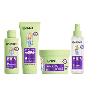 This Garnier Method for Curls Bundle provides a complete, multi-step system designed for intense hydration and definition for textured hair. The comprehensive range focuses on delivering 72 hours of consistent moisture using key complexes like Hyaluronic Acid. It supports naturally bouncy, defined curls through a silicone-free approach.