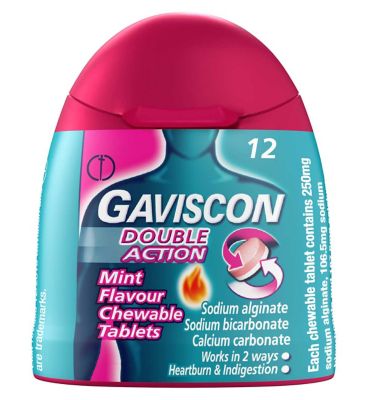 Gaviscon Double Action Heartburn Indigestion Mint Flavour Chewable Tablets x12