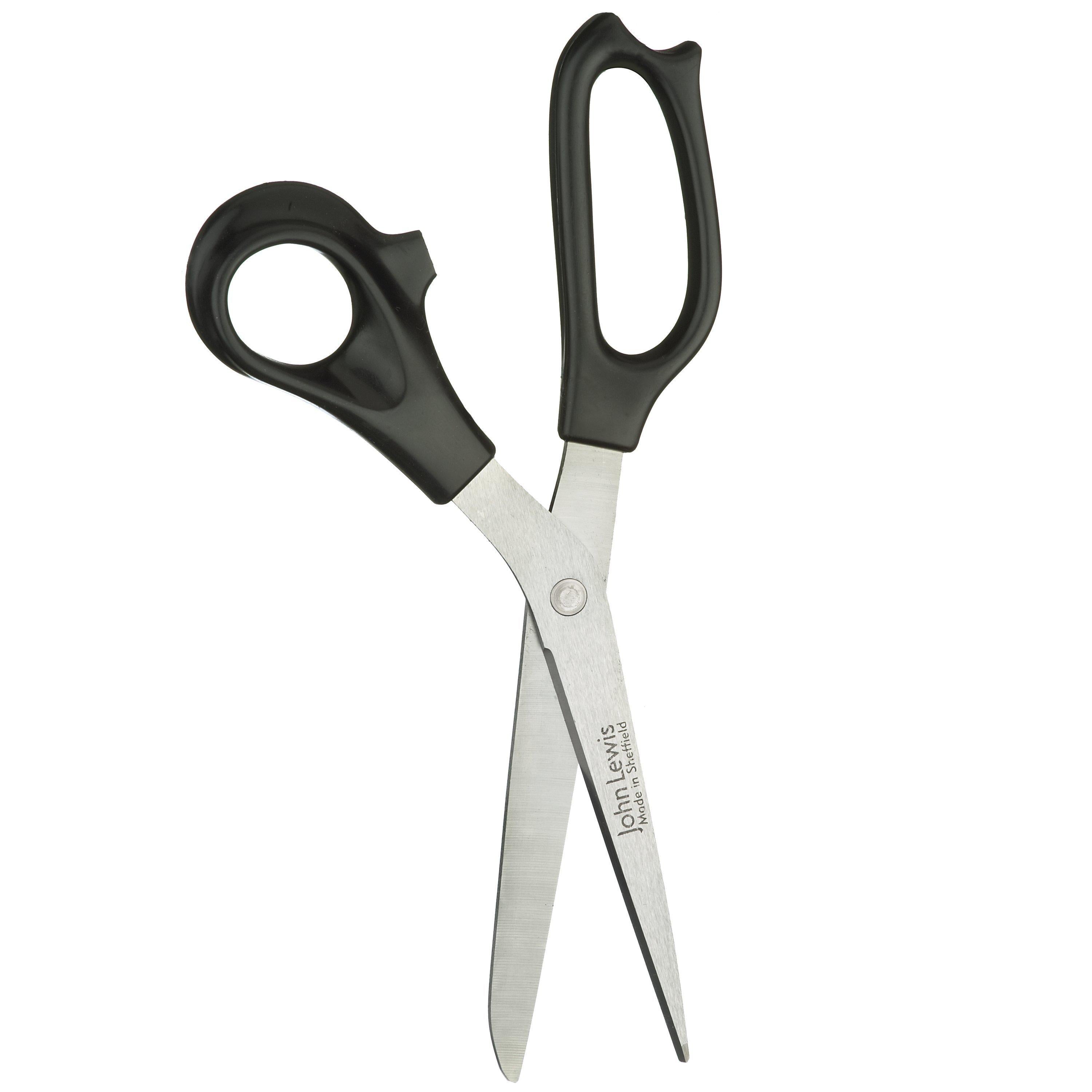 These John Lewis General Purpose Scissors, measuring 23Cm, are excellently crafted in Sheffield, UK, ensuring long-term reliability. Featuring durable stainless steel blades and comfortable plastic handles, these sharp scissors offer very reliable cutting performance for every household task. This quality tool represents superior British engineering and utility for your needs.