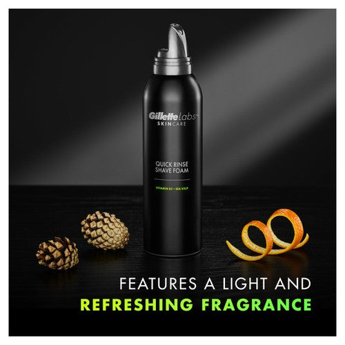 GilletteLabs Quick Rinse Shave Foam provides a lightweight formula designed to rinse clean with minimal effort after use. This men’s shaving foam carries a light, refreshing fragrance and is intentionally formulated without added alcohol or dyes. It works to effectively help protect the skin surface while you are shaving.