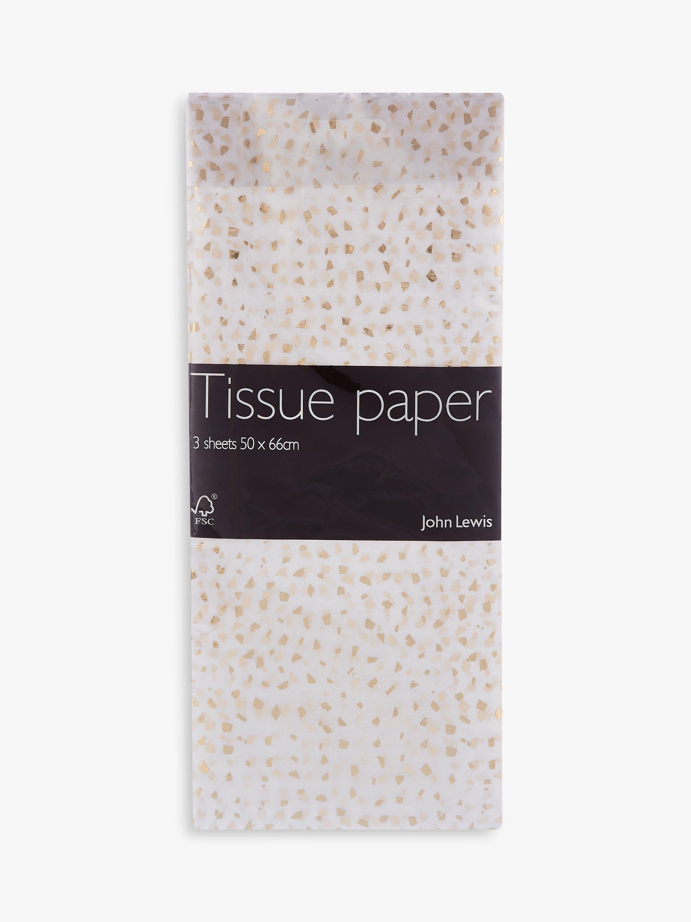 John Lewis offers this set containing exactly three sheets of quality tissue paper, perfect for special gift presentations now. These sheets feature beautiful, subtle gold fleck detailing throughout, making them highly decorative for any precious present. The material has a wonderfully soft texture. This essential pack ensures an elegant finish.