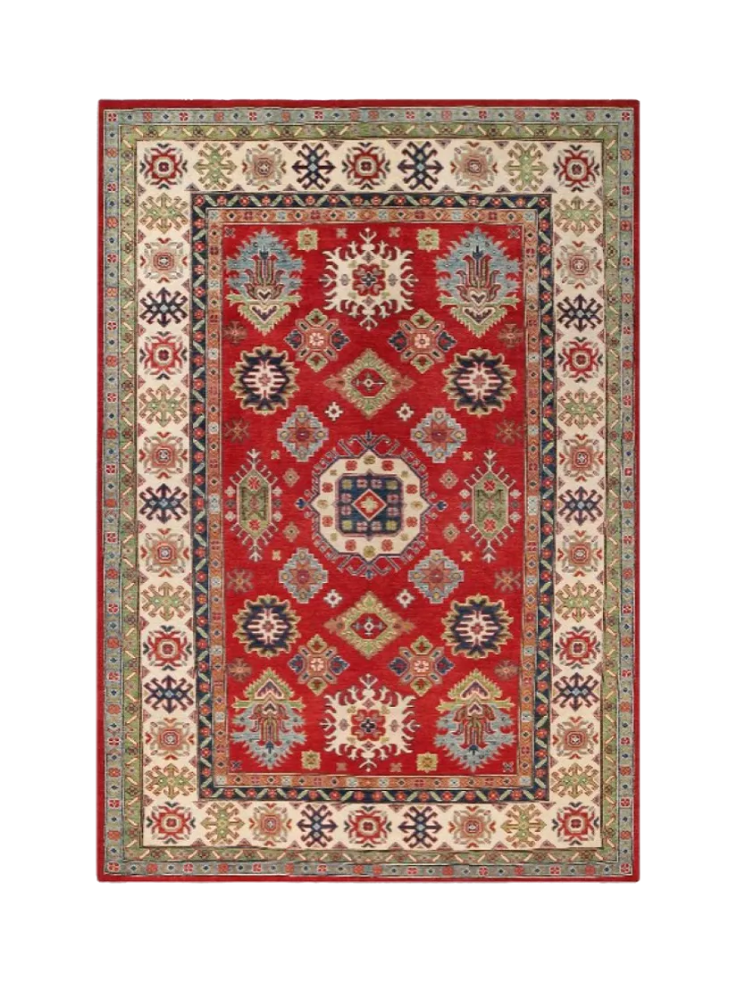 The supreme Kazak design is mainly made by the Hazara Tribes of Afghanistan. The design and patterns of Kazak rugs are taken from old Caucasian rugs (Caucasian carpets are from the areas south, east and north of the mountain chain of the Caucasus, Russia).