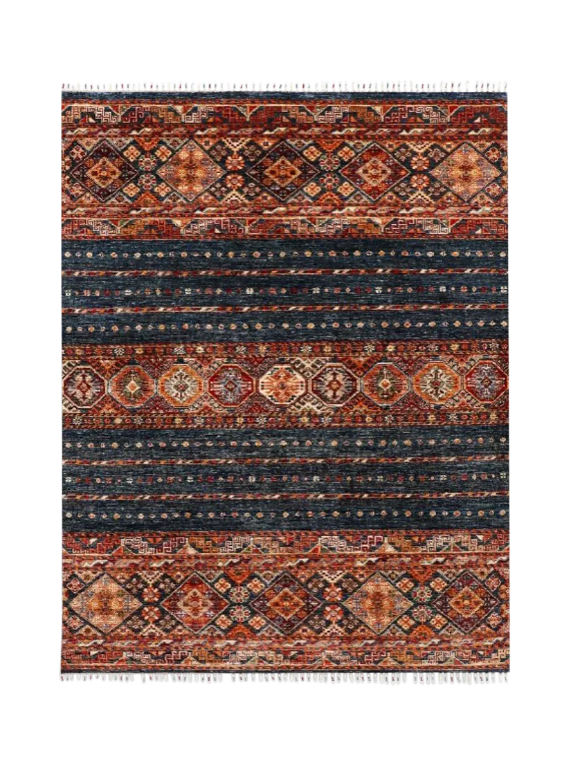 Khurjeen rugs are woven by Turkmen and Hazara tribes in the central and Northern provinces of Afghanistan. The design and patterns of Khurjeen rugs are taken from Saddle bags having different warm colours and straight strips too. Khujeen rugs are unique because of their pattern and delicate designs specially mixing contemporary and traditional designs together.
