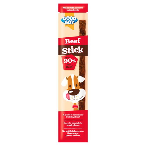 Read More| This super tasty Beef Stick is the perfect training treat or reward for dogs of all shapes and sizes. Gently oven baked for a soft chewy texture, this super tasty stick can be used to entice even the naughtiest of doggos to behave! TREATS FOR TRAINING: pocket size and easy to break into smaller pieces, this is the perfect bite size reward or training treat for home or for walkies NATURALLY MEATY: made with over 90% Beef - no other meats added FOR SENSITIVE TUMMIES: made without artificial colours, flavours or preservatives to be gentler on tums At Good Boy it's all about your dog - making sure you and your furry pals are happy is at the top of our priority list, starting with the tastiest treats and the coolest toys and accessories. Making dogs' tails waggle is second nature at Good Boy: our motto is: "if your dog is healthy and happy, so are we!". Find out more and take a walk in our world at goodboy.co.uk |