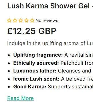 Indulge in the uplifting aroma of Lush's iconic Karma shower gel, a truly unique sensory experience.
