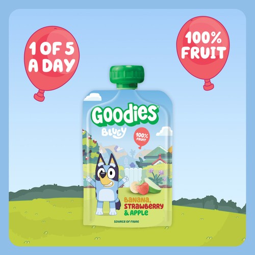 These Goodies Bluey themed fruit pouches offer a simple way for children to enjoy real fruit refreshment. This multipack provides a convenient, on-the-go snack option suitable for various daily routines.