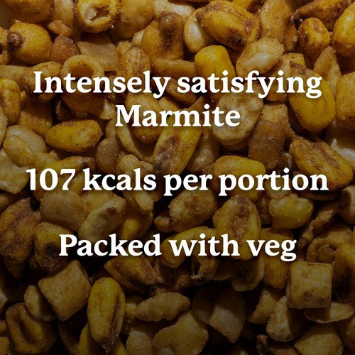 This Graze Crunch offers an intense savoury flavour experience featuring a unique combination of textures and satisfying crunch. It combines broad beans, roasted corn, and corn hoops, all coated in a distinct Marmite seasoning blend. Enjoy this flavourful bite that supports your nutritional goals without compromising taste.