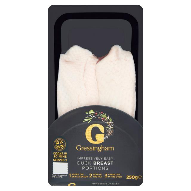 Product details Description Duck Breast Portions From Our British Farms Cooks in 20 Mins Fresh class A, skin on duck breast portions The well-bred duck The Gressingham Duck® is a unique breed that first came about when the flavourful Mallard was crossed with the larger Pekin duck, now renowned for... Read More