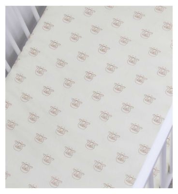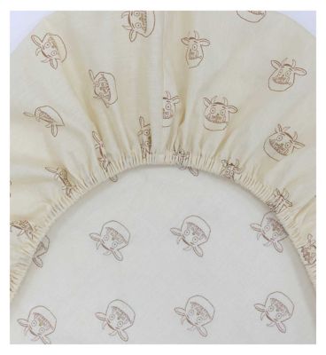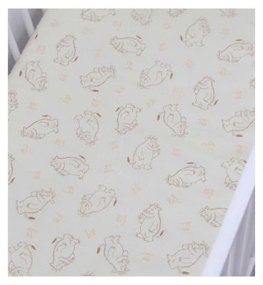Read MoreLoved by children of all ages, The Gruffalo is friendly, fun and charming! Officially licensed, this set of 2 The Gruffalo My First Fitted Sheets includes two coordinated Gruffalo inspired designs. One of the fitted sheets features The Gruffalo thinking and playing, with Mouse, on a cream background. The companion fitted sheet features a repeating pattern of a stencilled picture of the Gruffalo’s head on a plain cream background. Designed to fit cot beds, junior beds and toddler beds, the My First Fitted Sheets feature an elasticated hem so they stay secure and snug throughout the night, and fit a variety of beds as your child grows. The Gruffalo My First Fitted Sheets are each made from responsibly sourced 100% cotton so they are kind to young skin, and are machine washable at 40°C and tumble dryer safe, ideal for a quick wash in case of accidents, spills, or just to freshen up the fitted top sheet. Each of the fitted sheets measure 70 x 140cm, ideal for children’s cotbeds, toddler beds, and junior beds, with 18cm depth to fit over the mattress