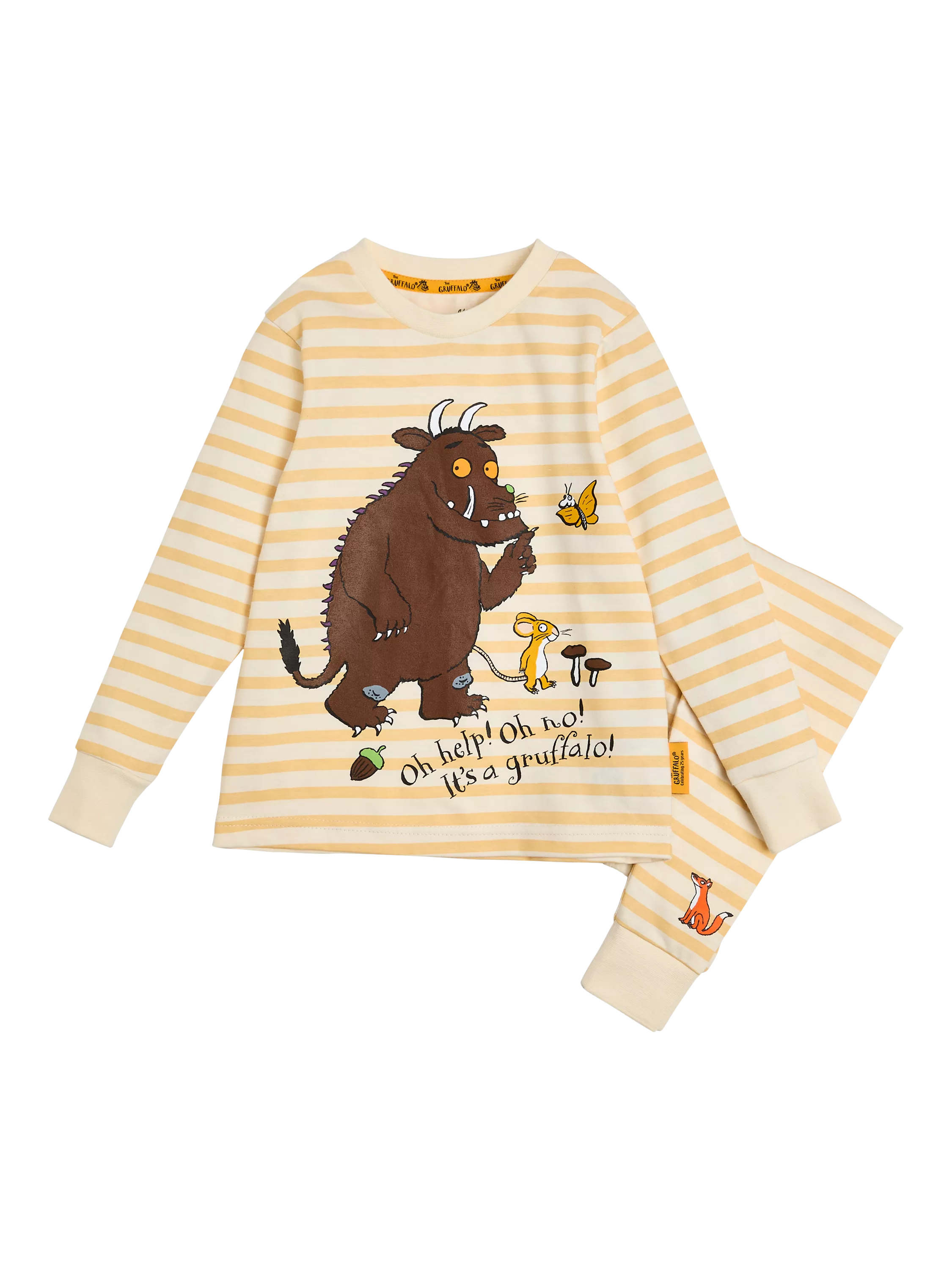 Add a little adventure to the bedtime routine as your little one explores the deep dark woods in the comfort of our Gruffalo Pyjama Set. Lovingly crafted from 100% cotton for a soft and gentle touch, this set features delightful scenes from the beloved children's book, featuring the Guffalo and other woodland friends from the tale. Crafted for comfort and whimsy, these pyjamas are perfect for cosy nights in.