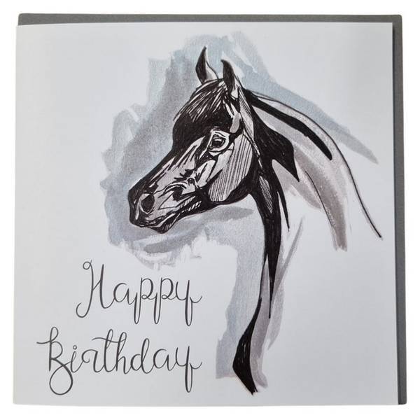 material card length 150mm design horse text watercolour contents 1 envelope blank inside packaging cellophane wrapped