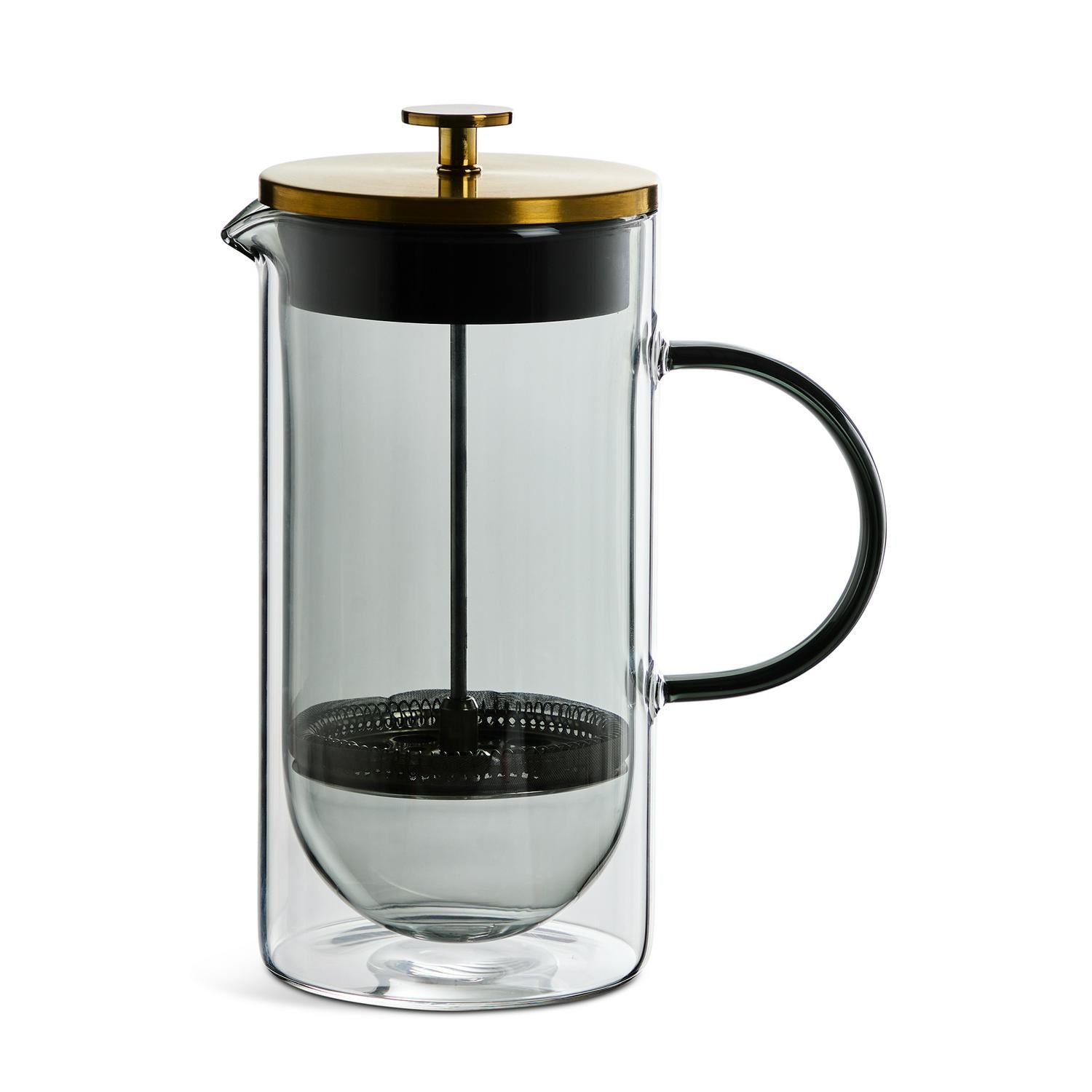 Enjoy the rich aroma of freshly brewed coffee with this contemporary 8-cup cafetiere. Designed for straightforward daily preparation, this unit allows you to simply plunge and pour your favourite grounds. It features a sophisticated smoked glass body paired with stylish brushed gold accents for an elevated look on your countertop.