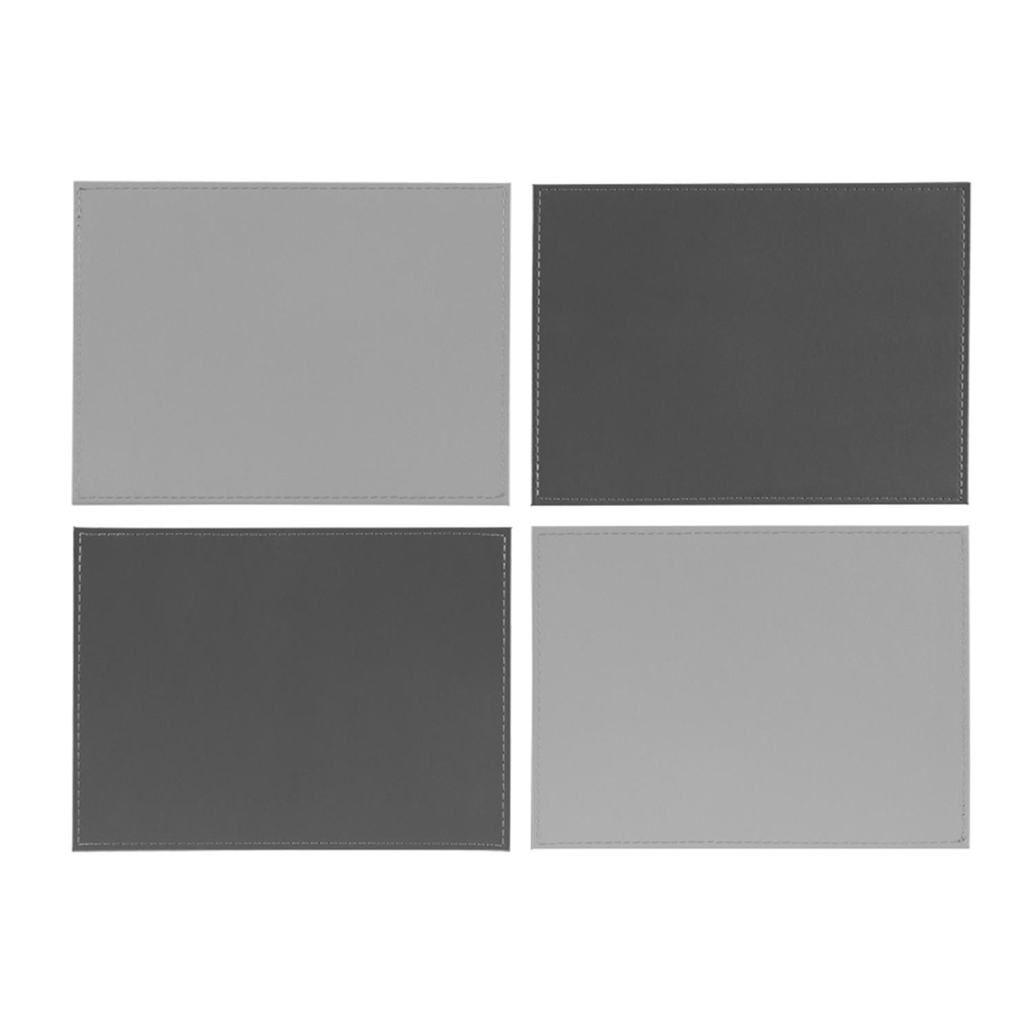 Read MoreShape up for dinner with our two-tone stitched faux leather placemats. This smart grey foursome look uber cool while protecting your table from spills and splashes. Go all dark, go all light, or flip and mix it up. Team with our matching coasters for a smooth, modern style.