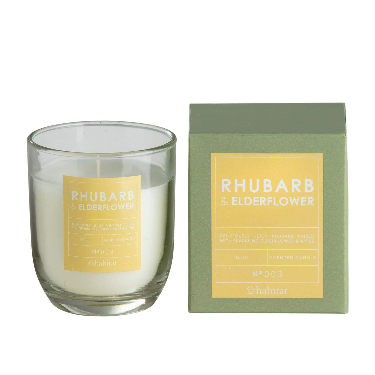 This Habitat boxed candle is crafted to create an invigorating ambience using its complex fragrance profile. The aroma is distinctively herbaceous, citrusy, and tangy, providing a sharp yet welcoming scent experience. Enjoy the sweet profile of elderflower perfectly balanced with light, fruity notes of rhubarb.
