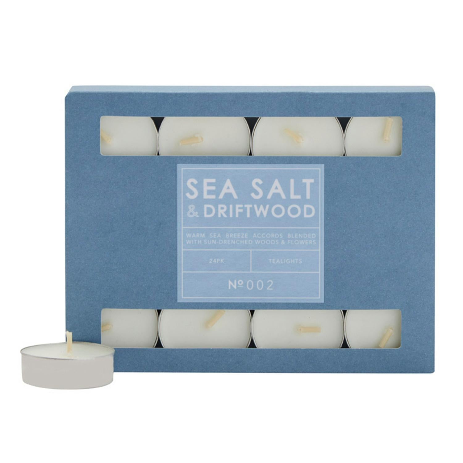 Read MoreInstantly set the mood with this pack of 24 tealights. Dot them around for a burst of fresh notes of sea salt blended with musky driftwood. Great for gifting.