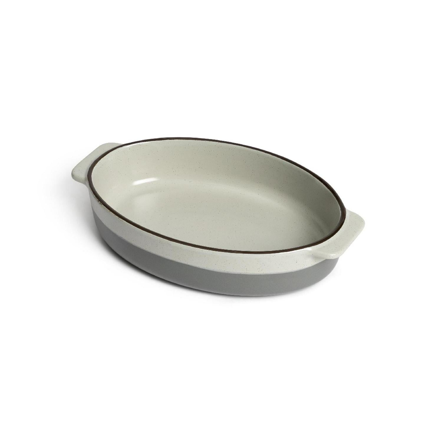 This Habitat oval roaster features a stylish two-tone design complemented by a rustic rim and a subtle speckle finish. Measuring 29cm medium size, this piece is designed to move effortlessly from cooking to serving.