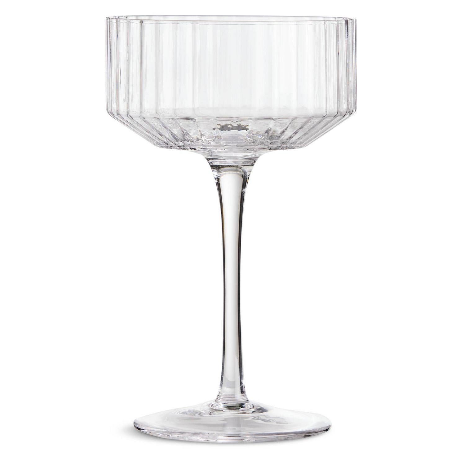 This Habitat glass features an elegant, visually appealing wide ribbed texture suitable for various beverages. Its long stem and classic coupe shape make it a versatile addition to your glassware collection. Serve sparkling wines or classic cocktails in style with this charming piece.