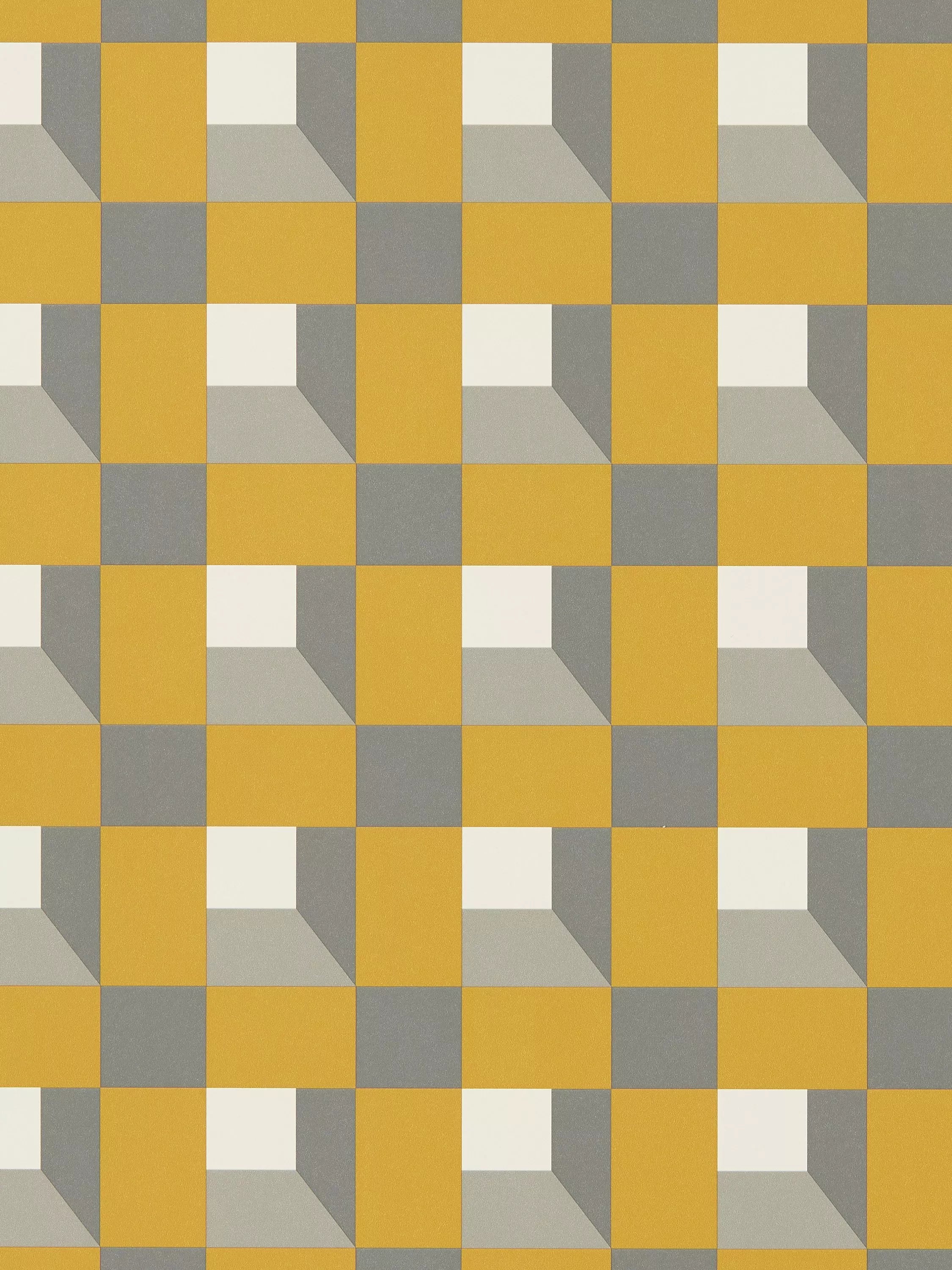 With a strong architectural look, this large-scale checkerboard wallpaper is influenced by a traditional artisan weave. Layers of 3D blocks build to make a bold geometric pattern.