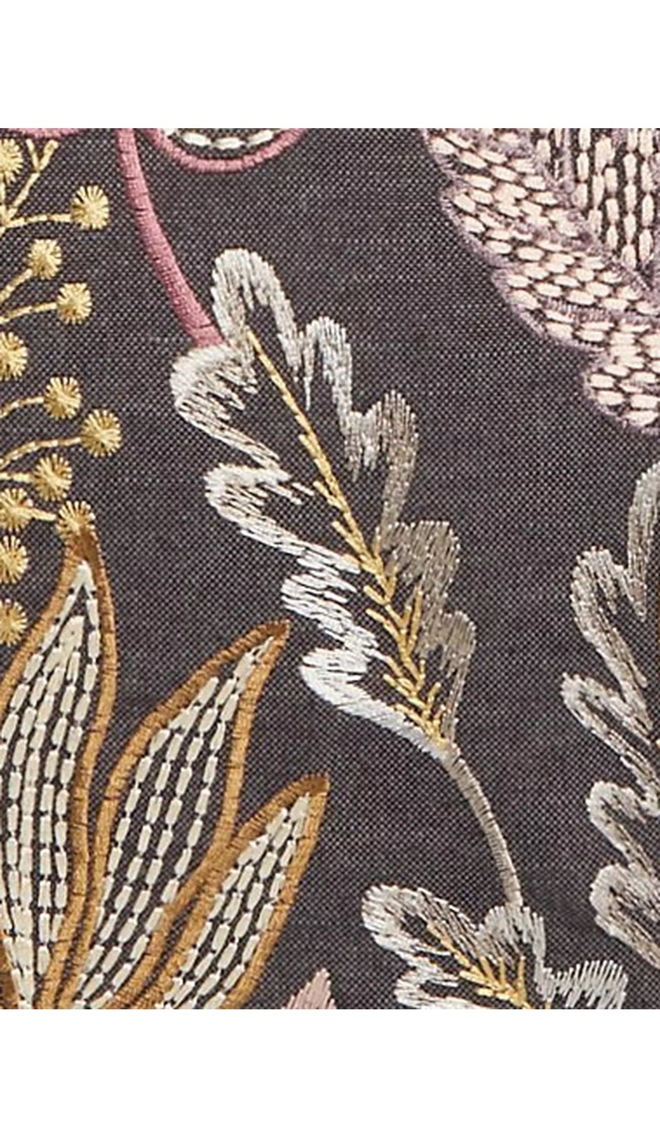 Enjoy the island feel of this multicoloured, embroidered design, inspired by incredible coral reefs and rainforest plants. A plain background provides a base that contrasts against the elegance of light reflecting threads.