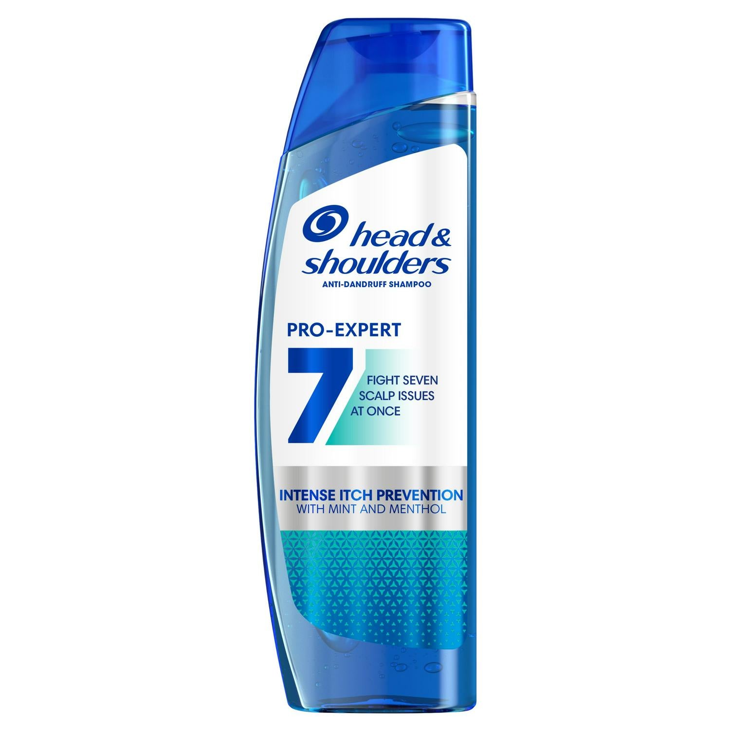 Pro-Expert 7 Intense itch rescue Anti-dandruff Shampoo, infused with mint and menthol, contains the Head & Shoulders highest ever level of anti-dandruff active. This formula fights 7 scalp issues, giving you complete scalp protection, instantly cools and is clinically proven to fight the causes of intense itching** over time, helping to cleanse and rebalance the scalp. Use every wash for maximum results. COMPLETE SCALP PROTECTION IN 1 BOTTLE: 1. Fights persistent dandruff*, 2. Rebalances Scalp, 3. Controls oiliness, 4. Deeply Cleans Pores, 5. Fights itching**, 6. Relieves Scalp, 7. Reduces Hair Fall*** *visible flakes from 2 ft, with regular use **itch related to dandruff, with regular use ***Hair retention due to improved scalp condition