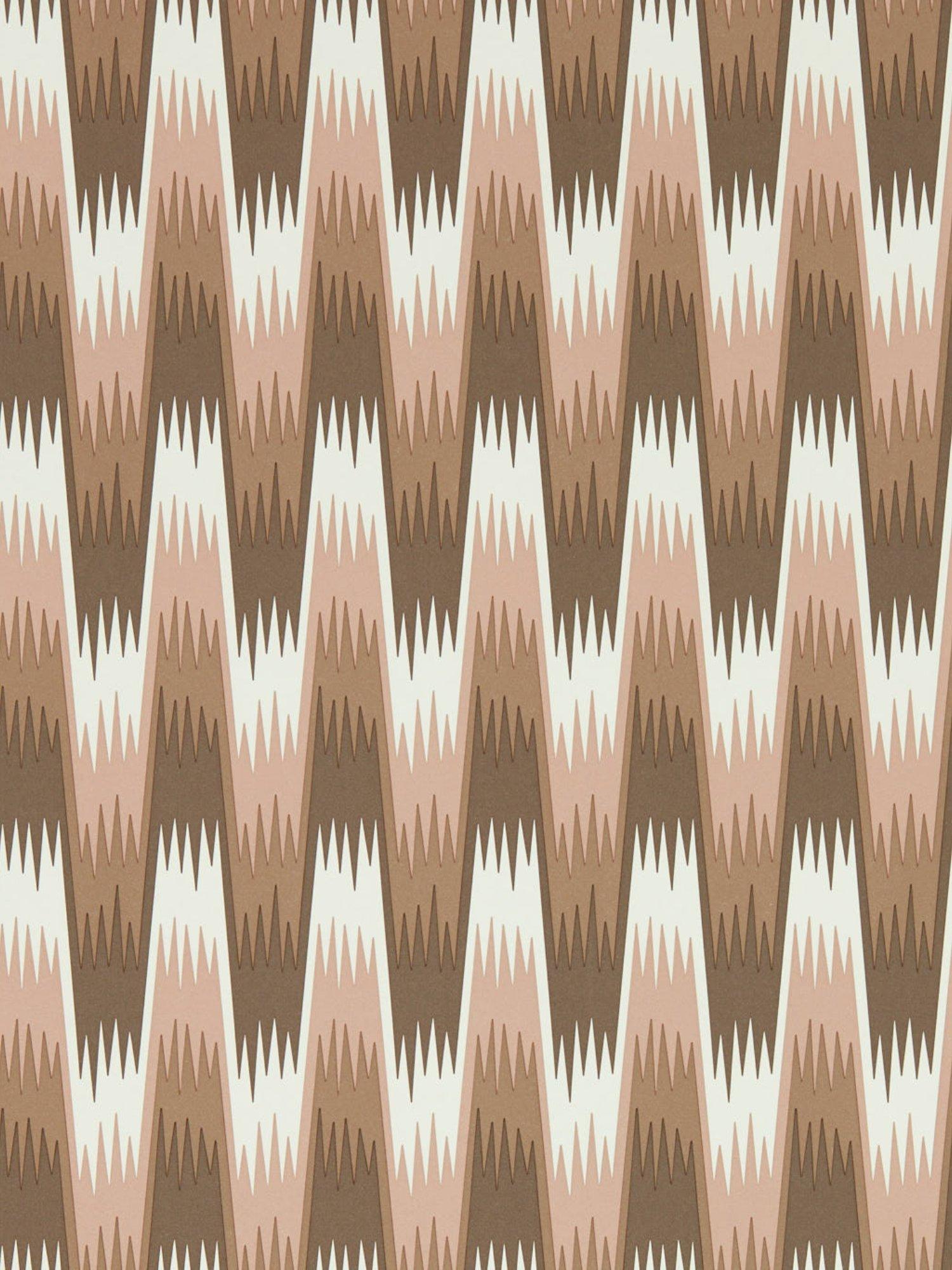 This Henry Holland X Harlequin Southborough Wallpaper features the Rose colourway, a textured wallcovering. Observe the stepped chevron ombre pattern reflecting the designer's clay work. These colours intensify throughout the design, cocooning your room in deepening, rich decorative style.