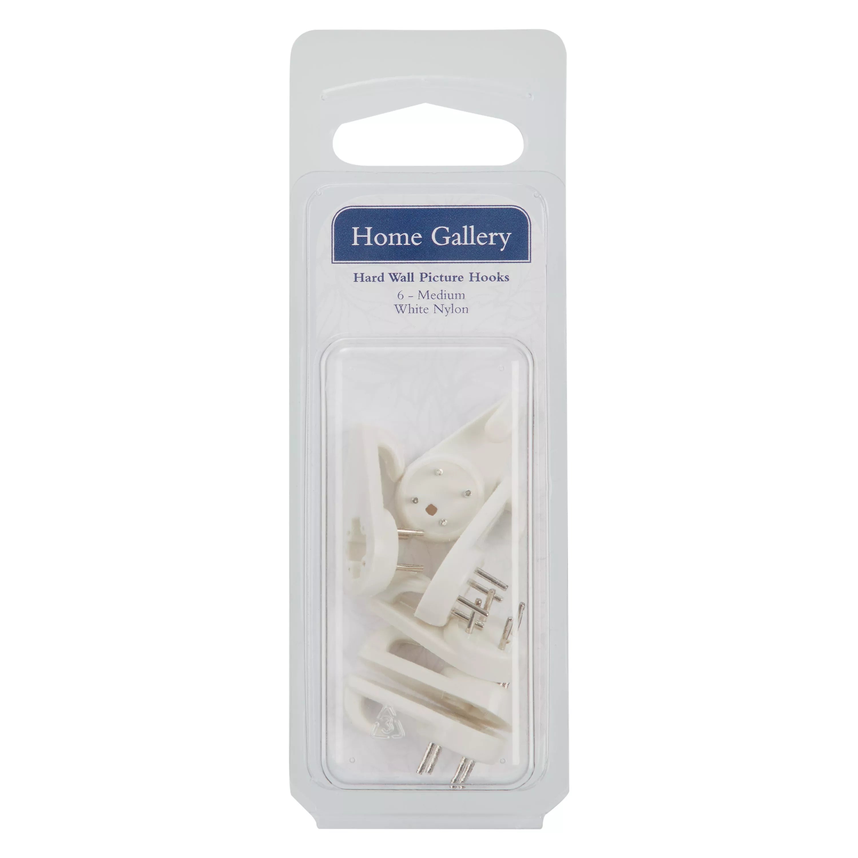 Pack of 6 medium hard wall picture hooks.