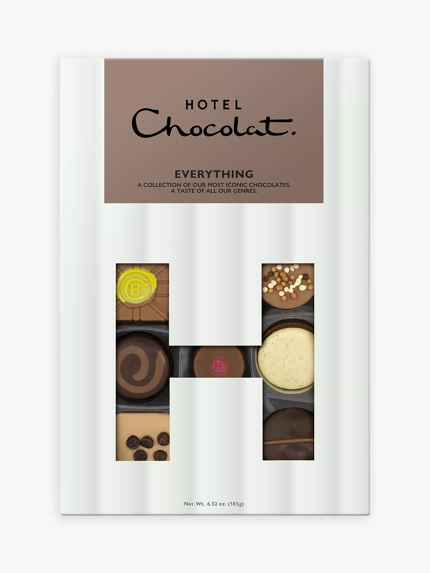 14 of Hotel Chocolat’s top-selling recipes: a box of classic favourites in milk, dark and white chocolate. Enjoy Champagne Truffle (made with real Champagne), juicy Cherry Deluxe and super-smooth Mousse au Chocolat, alongside the creamy Eton Mess, crunchy Florentine Isabelle and authentically tangy Raspberry Smoothie. An ideal gift or just for keeping all to yourself.