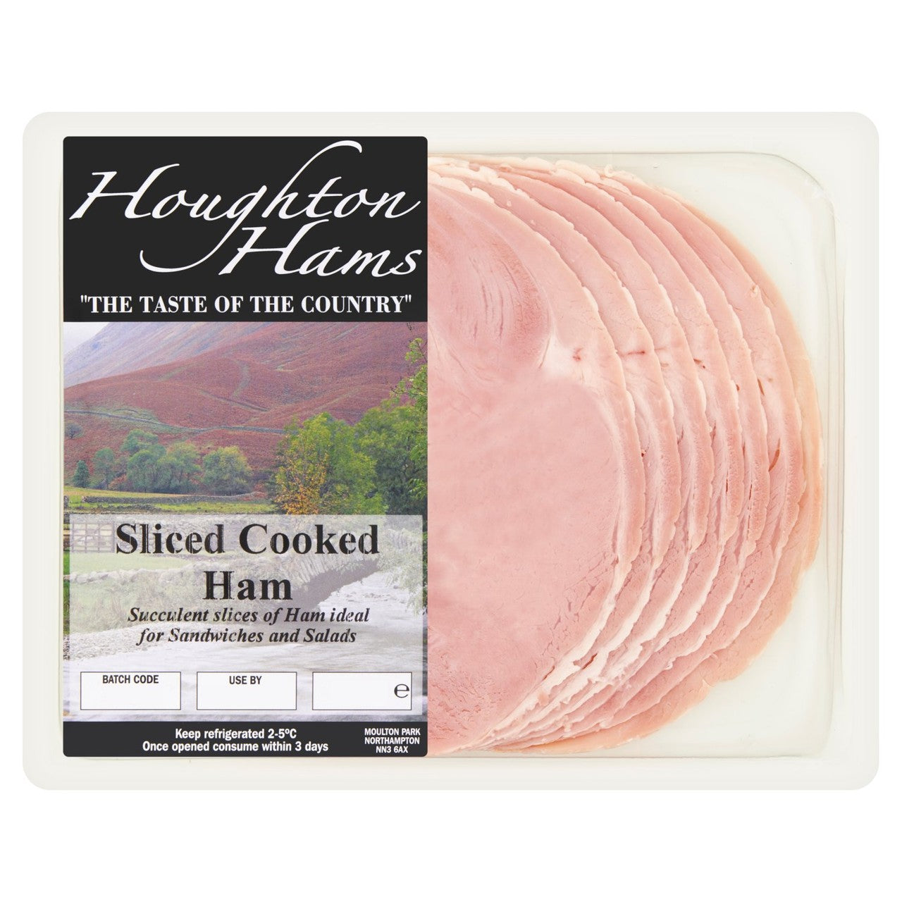 Houghton Hams offers succulent slices of their plain cooked ham, reflecting the traditional 'Taste of the Country'. This product is ready to use, making meal preparation straightforward and flavourful. It is an excellent staple for everyday use in the kitchen.