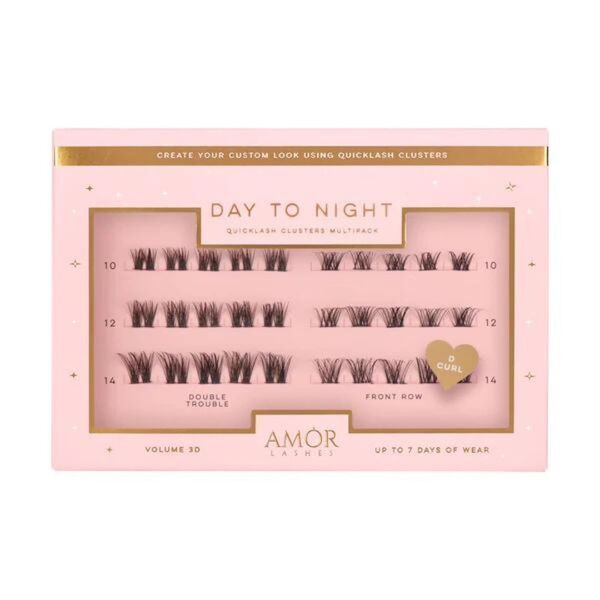 house of amor day to night quicklash clusters multipack this pack contains a combination of natural and glam lashes front row natural and double trouble glam in lengths 10mm 12mm and 14mm so this pack is perfect if you like a bit of both