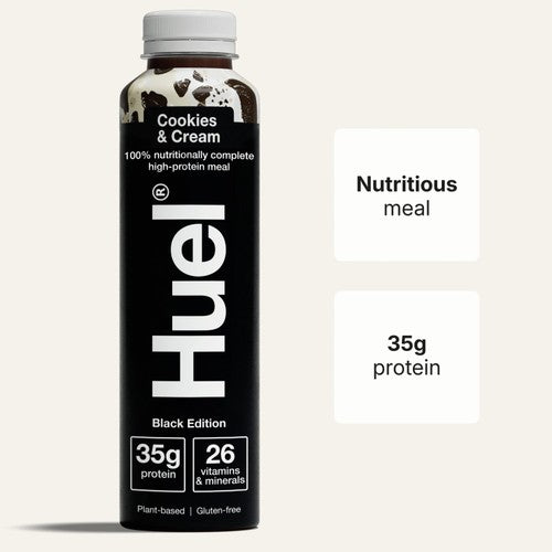 Huel Black Edition Cookies & Cream provides elite, nutritionally complete fuel in a convenient ready-to-drink format. Formulated by nutritionists, this is an ideal high-protein drink for busy schedules when you need rapid, balanced nutrition. Shake, sip, and enjoy this complete meal solution.