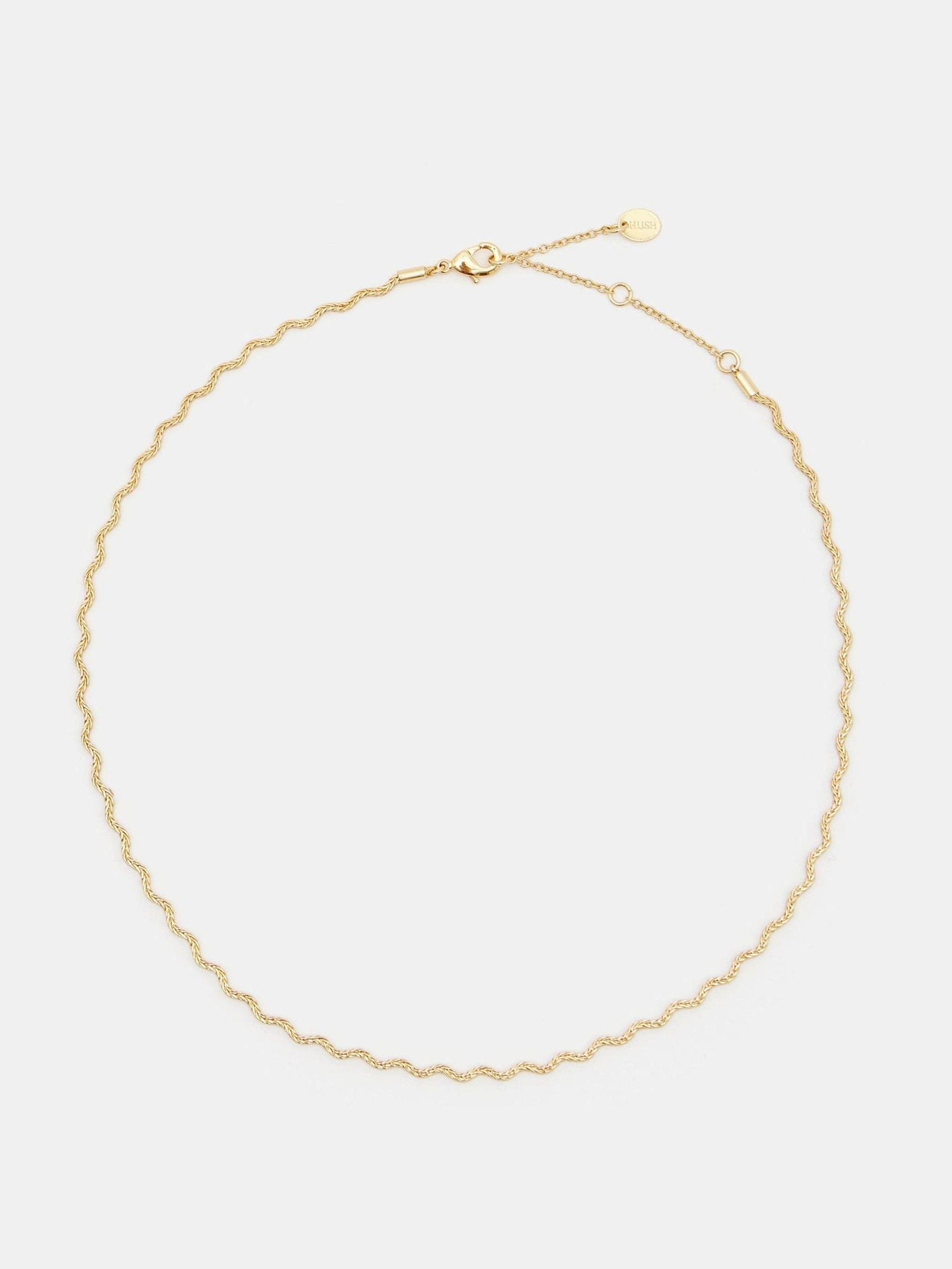 Our gold-plated Tilly necklace ticks both boxes, designed with a twisted chain that naturally catches the light.