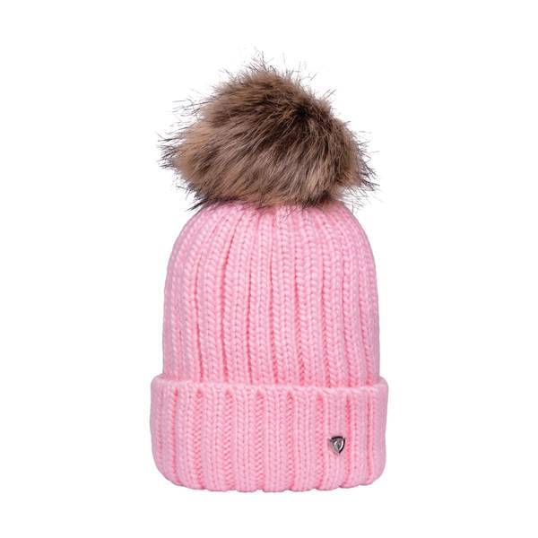 outer materials 100 acrylic lining material 100 cotton fabric knitted design badge faux fur pom pom turned up cuff
