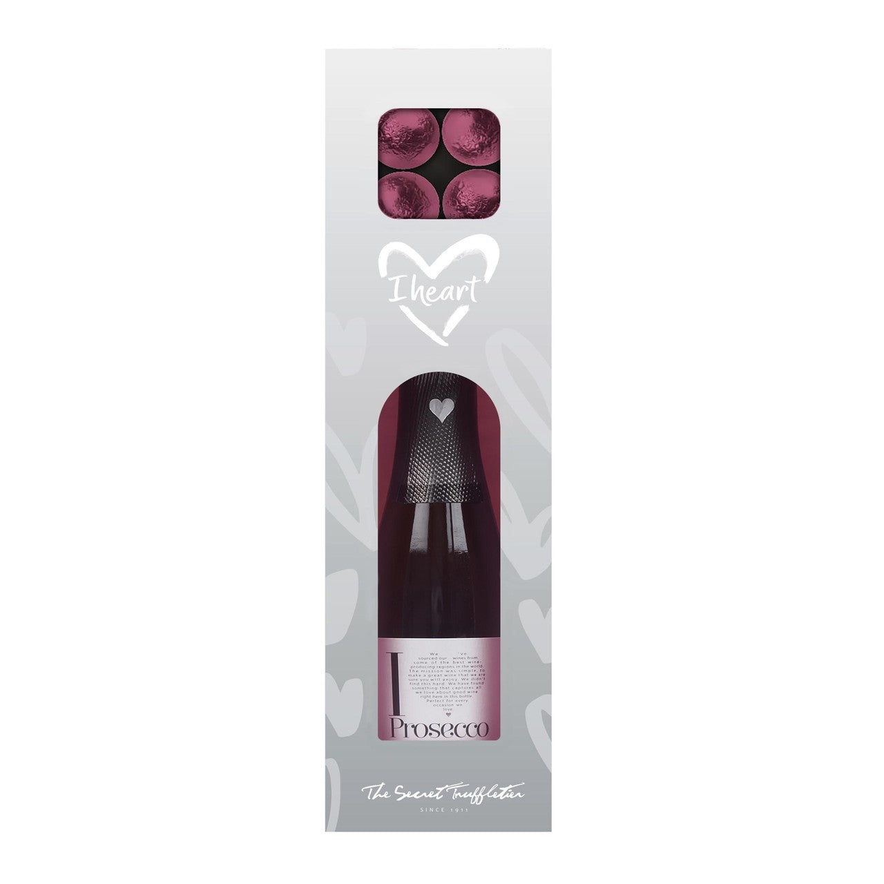 This curated gift set combines a miniature bottle of I Heart Prosecco with luxurious Milk Chocolate Prosecco Truffles. The included wine is a D.O.C. Extra Dry style, offering a crisp counterpoint to the rich confectionary. It presents a convenient and celebratory pairing option.