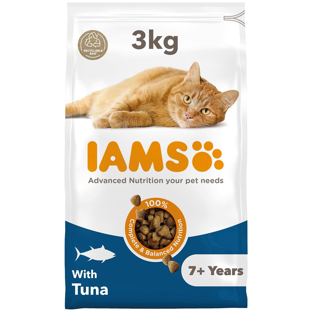 IAMS Advanced Nutrition with Tuna is a complete and balanced dry food specifically formulated for cats aged seven years and older.