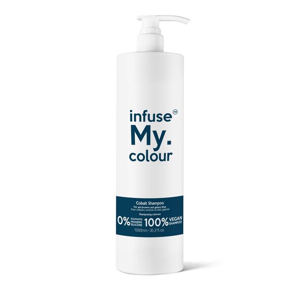 the perfect product to maintain your dark hair in between salon visits infuse my colour cobalt shampoo is intended for those with dark hair but can also be used by people with bleached or highlighted hair to achieve green and blue tones for those with black hair it will keep your hair inky black and for those with coloured dark brown hair it will neutralize red and orange tones100 vegan formula 0 sulphates 0 silicones 0 parabens apply a generous quantity of infuse my colour shampoo around double the quantity you would use of regular shampoo evenly rinse and repeat the shampoo procedure and follow with infuse my colour treat conditioner to comb through and rinse infuse my colour products have instant results so you can style your hair as normal once washed
