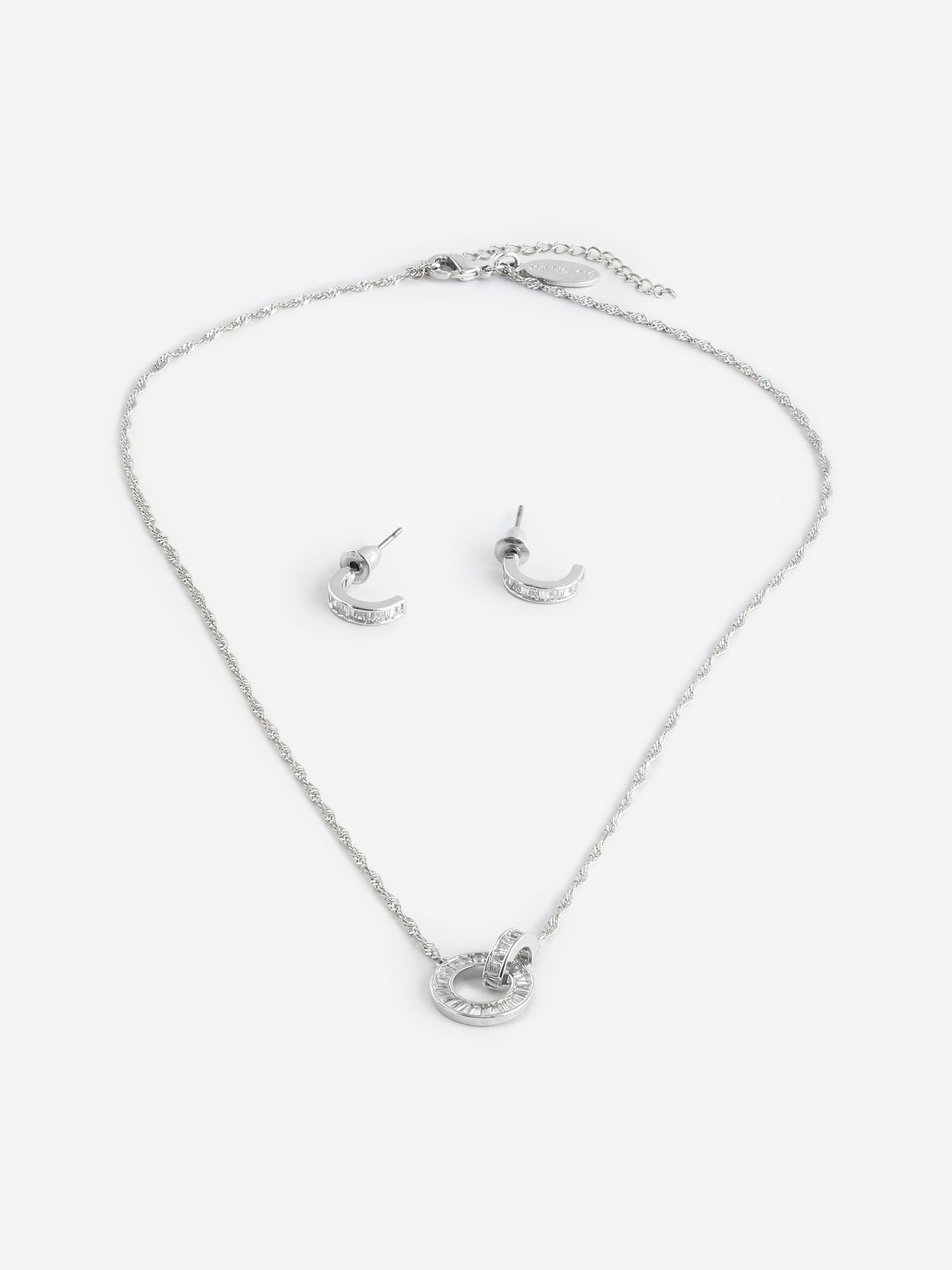 Inicio Silver Tone Cubic Zirconia Linked Circle Set - Gift Boxed