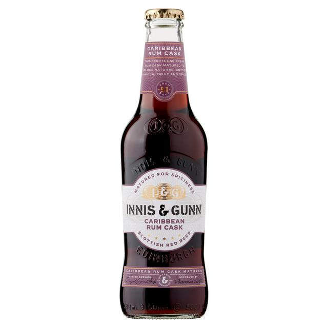 Product details Description Strong Beer. Aged 51 Days Matured for Spiciness Scottish Red Beer Caribbean rum casks meet Scottish red beer in an explosion of cool, spicy rum notes, vanilla and rich fruit. This is a beer to be savoured. It is Caribbean Rum Cask matured for spiciness and richness of flavour. Aromas of rum, Demerara, dried fruits and spice, warming malt character with hints of vanilla and oak. The bitterness is understated leaving plenty of room for a long spicy-sweet finish. This full bodied flavour is enhanced by the use of Innis & Gunn Ale Malt, Chocolate Malt and Roasted Barley. The finish in this one of a kind beer is warming yet mellow. We don't accept any borders or boundaries when it comes to our quest for innovation. We want to create flavour combinations that are worth crossing an ocean for. Our Innis & Gunn Caribbean Rum Cask offers just that. Rum Cask-Matured Red Beer. 10C Refund at Collection Depots in State/Territory of Purchase Mobius Loop Dietary Information Manufacturer Preparation Country of Origin Packaging Alcohol Storage Customer ratingWe deliver to over 120 countries || Whilst certain products cannot be delivered outside UK, some products may be subject customs and excise duties || We confirm if this product can be delivered to your location (outside the UK) when you enter your delivery address at checkout. If you are unable to checkout, please contact us via WhatsApp or email hello@mcgrocer.com to enquire if this product can be delivered to your location and to process your order via our live chat.