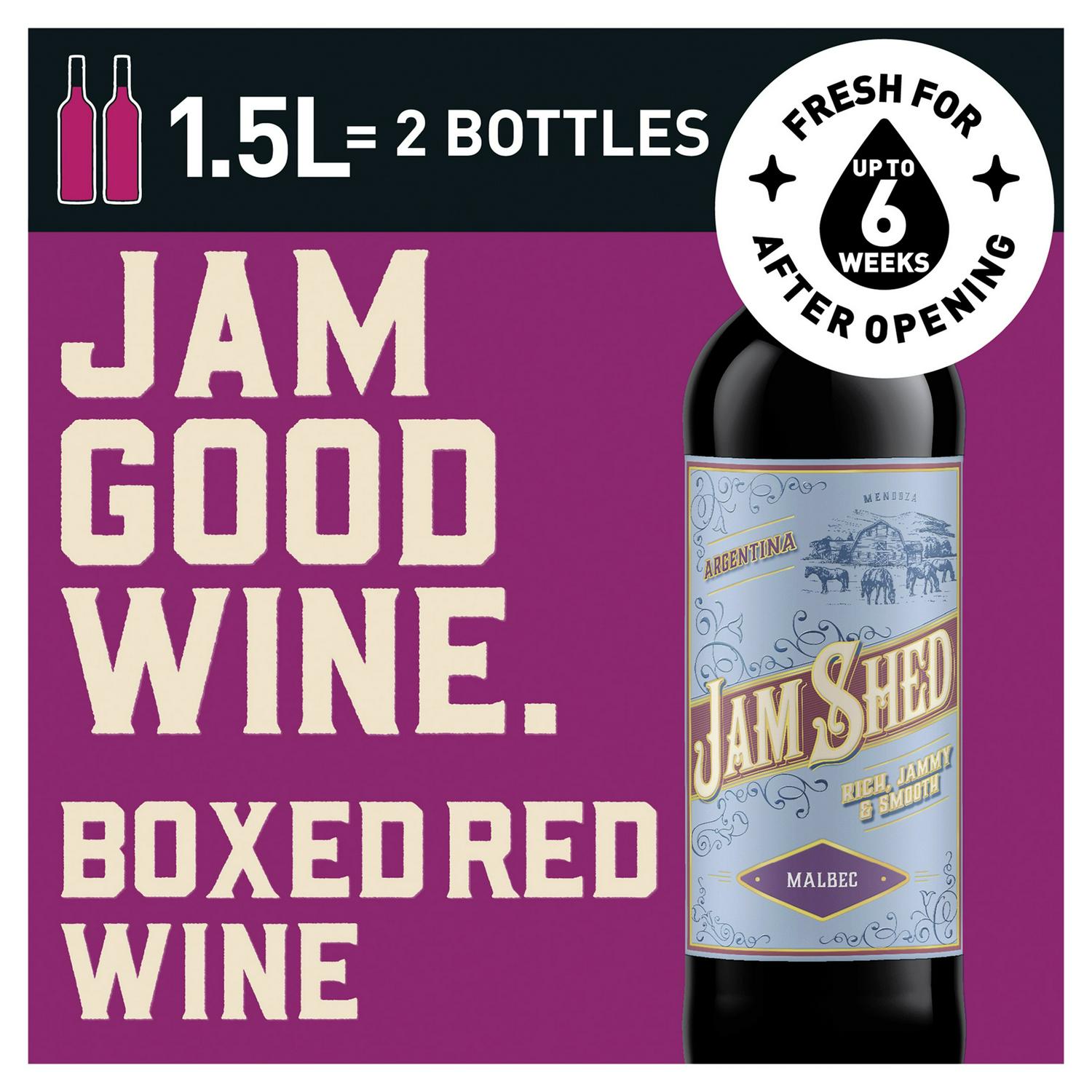 This Jam Shed Malbec offers rich, opulent flavours of dark fruit in a convenient 1.5L boxed format. Produced as a wine of Argentina, it is crafted to be delicious and simple for regular enjoyment straight from the box.