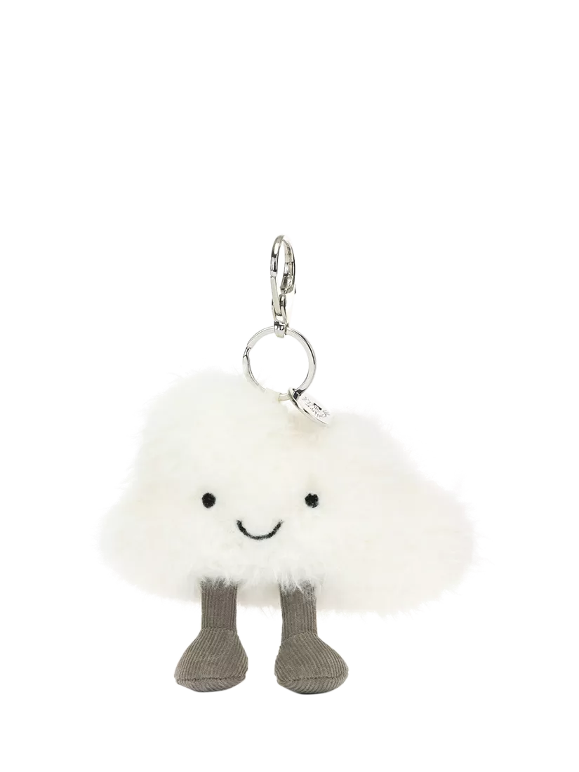 Always have a silver lining on hand with the Amuseable Cloud Bag Charm. Little and fluffy in cream faux fur with a stitched smile. This cloud has grey cordy boots and a silver clip, meaning it can come along on any adventure!
